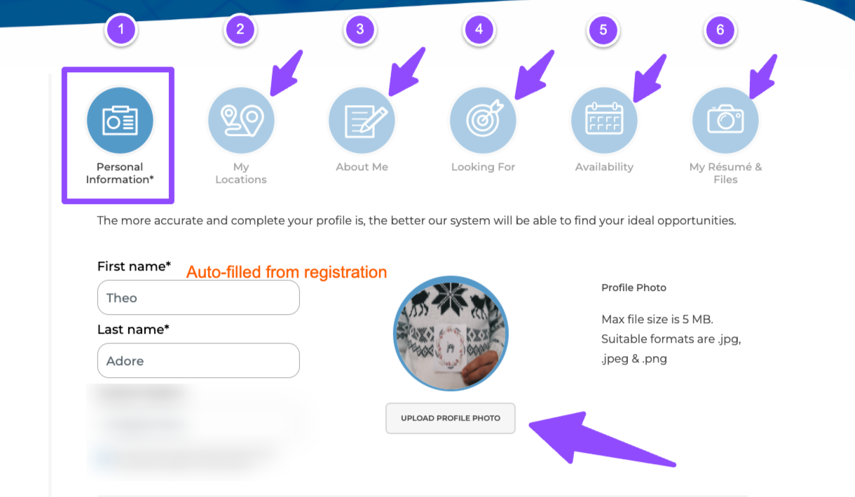 In this section, you should provide up-to-date and accurate personal information, including your full name, screen name, profile picture. You are also encouraged to include links to your social media accounts or personal websites so organizations can get a better understanding of you as a person.